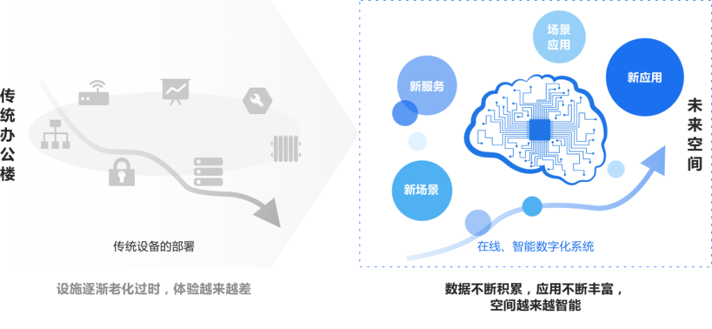 办公环境与企业、员工之间感知交互,充分融合,提升员工的工作效率,助力企业的发展