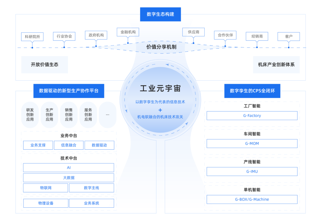 利用产数融合打通数字技术与机床产业壁垒,实现机床产业的管理重塑、价值重塑与生态重塑;推进数据驱动的生产协作平台、
